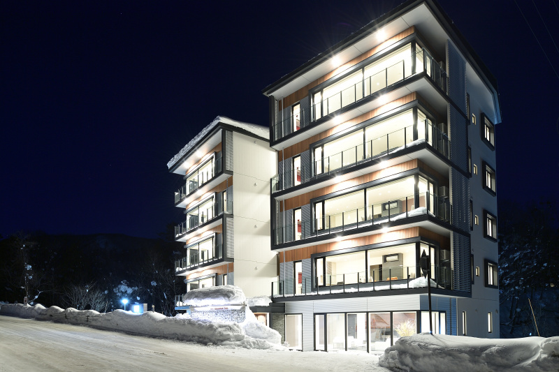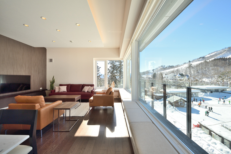 These three-bedroom/three-bathroom spacious apartments are located just in front of Happo Kokusai ski lift, with door step access to Happo-One Ski Resort. All apartments offer stunning ski hill views, fully equipped with modern/luxury furniture, kitchen and open plan living/dining with richly textured hardwood flooring.