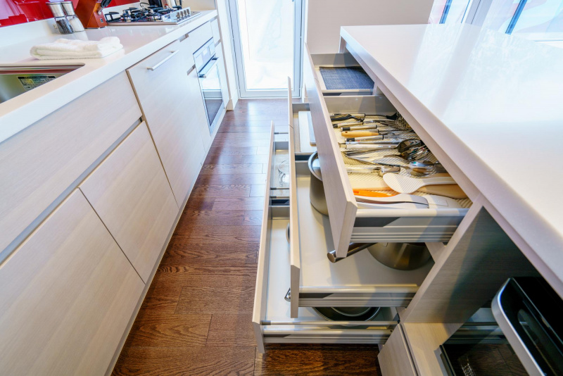 - Richly textured hardwood flooring throughout living, dining and kitchen