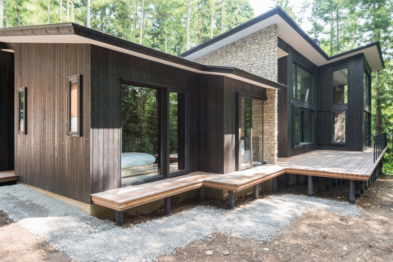 The villa is near the world famous Happo-one ski field, just 150m from the Sakka Slope. Wide living area with 5m high ceiling provides you a stay such as relaxing in the forest. The design can allow 2 families or small group of people can live with privacy secured. Each private area are all connected with the living room, which made a perfect balance between privacy and relationship bond. A south facing wooden deck allows guests to enjoy tremendous forest views.