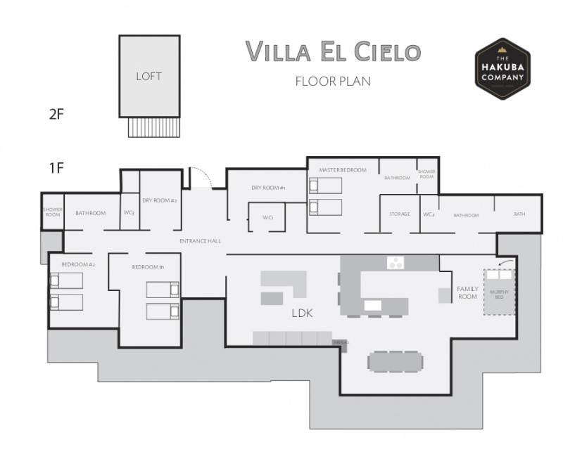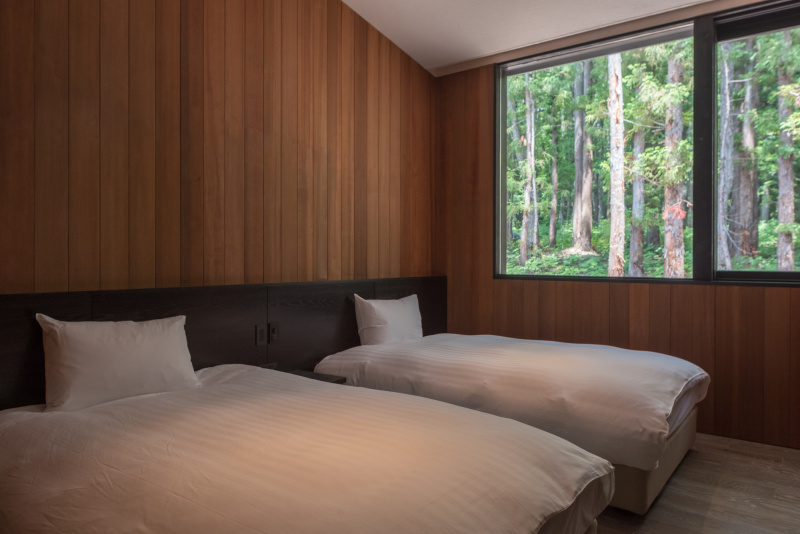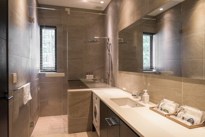 There are 3 bedrooms set with twin semi-double bed. 3 shower rooms in total, one of them got bathtub setted at a location that can see the forest in sight. If there is over 6 people staying, the villa is also prepared with wall hidden bed and futon in the loft. The kitchen is the latest model, fully eqipped with all kinds cookware, tableware and glasses. There are also 2 laundries and 2 ski lockers in case for the massive staying.